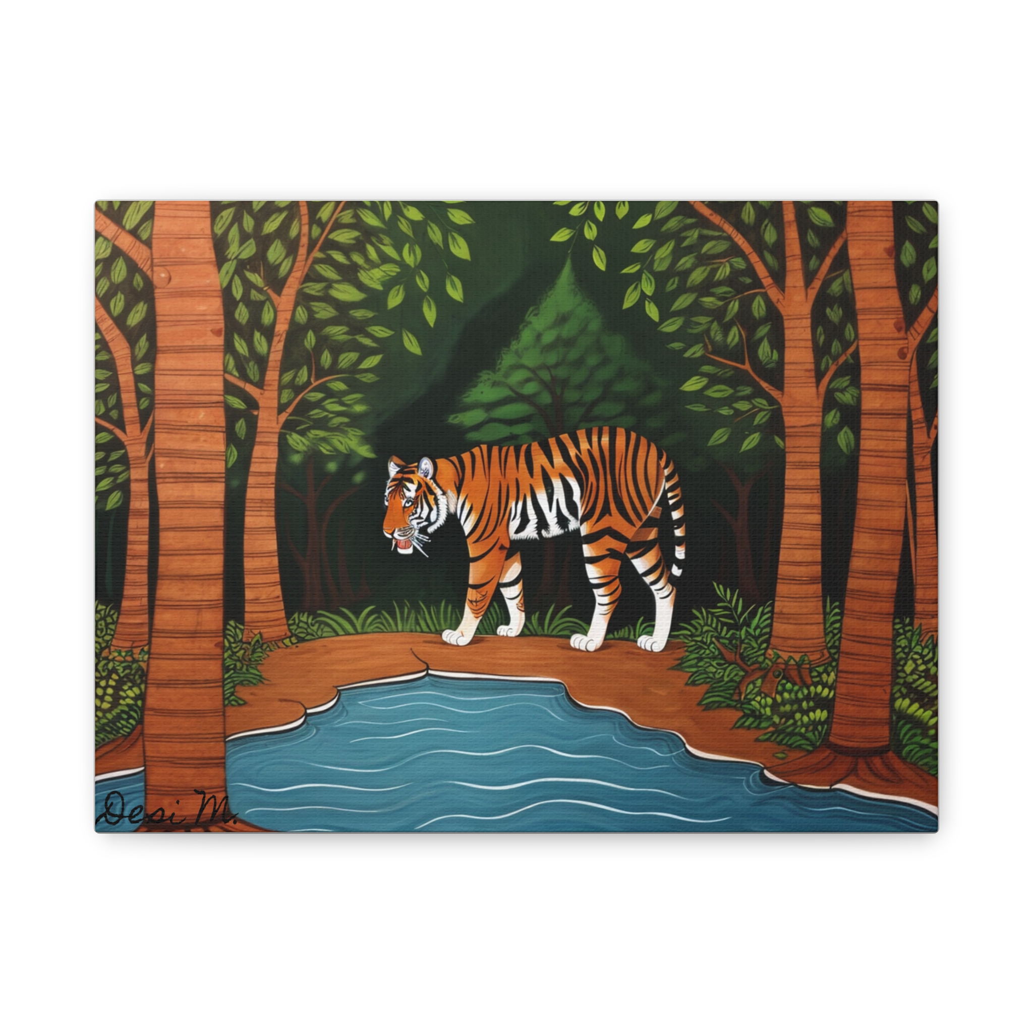 Bring the wild and adventurous vibe of a thirsty tiger in the jungle into your space with this stunning canvas print. Perfect for nature lovers, wildlife enthusiasts, and those who appreciate bold and unique artwork. Ideal for adding a touch of excitement to any room or office. Great for gifting on birthdays, holidays, or as a housewarming present.